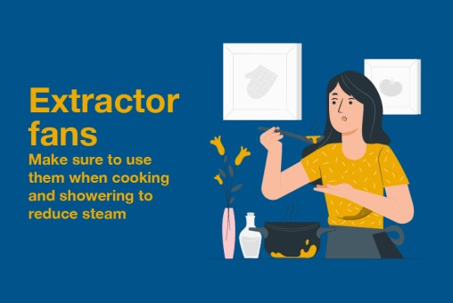 - Close the bathroom and kitchen doors when these rooms are being used, even if they have extractor fans, to stop the moisture reaching other rooms and open windows when cooking if possible