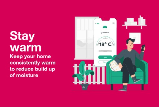- Keep rooms warm enough to avoid condensation. Keep low background heating on all day (this also saves energy costs as you don’t have to keep heating a cold home from a very low temperature)